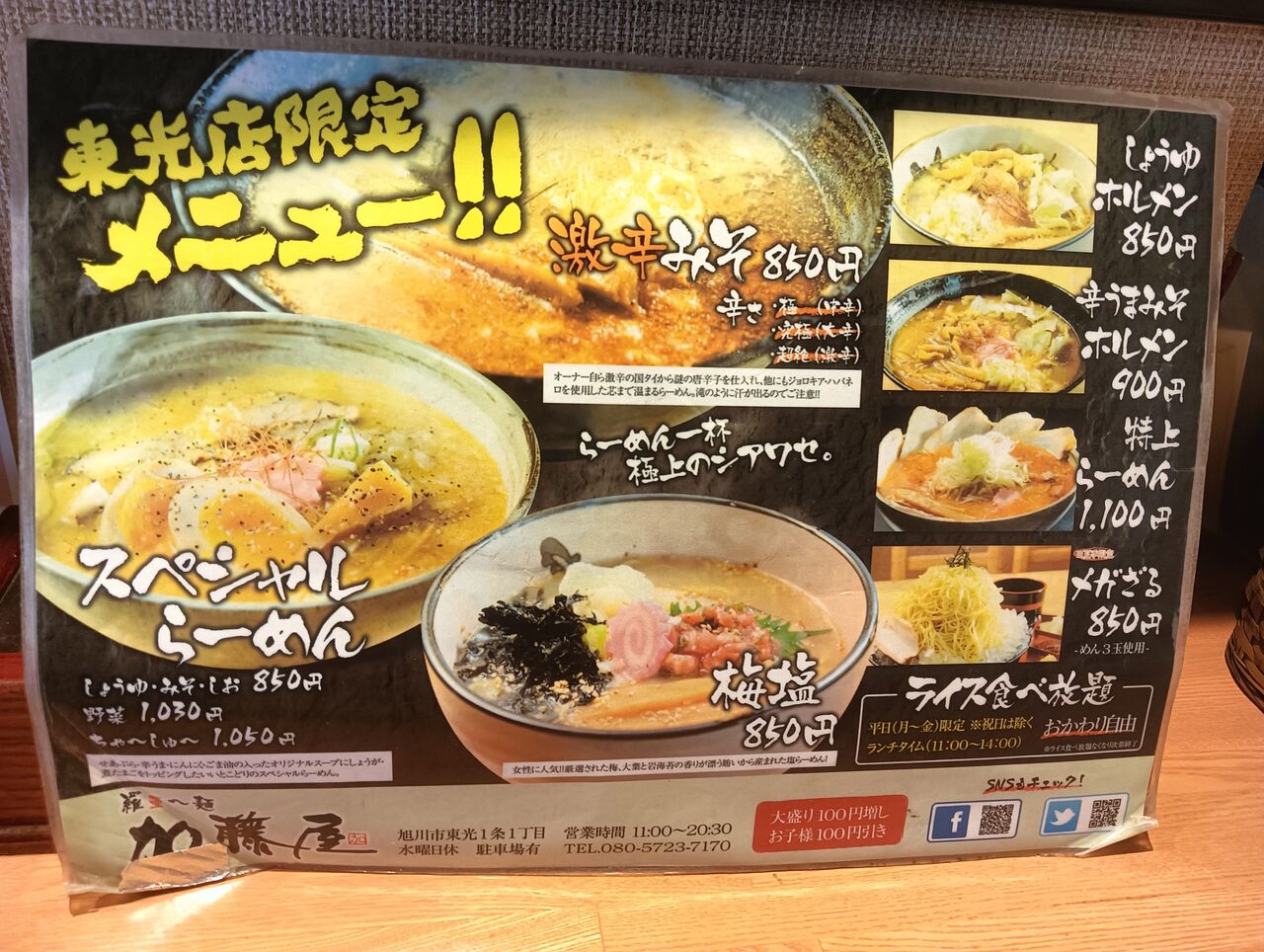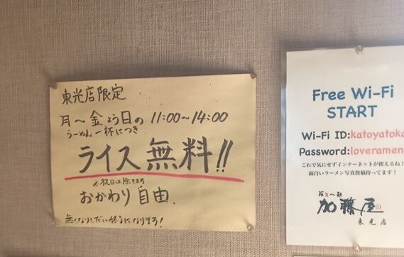しかもなんと‼ 平日はライスが無料‼(注;東光店のみです)