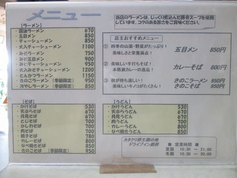 壁のメニューは昭和チック。
