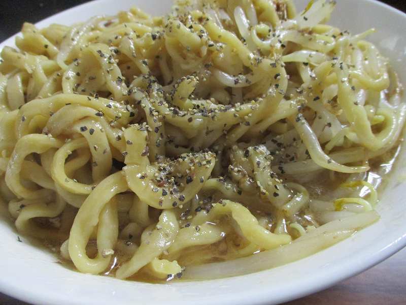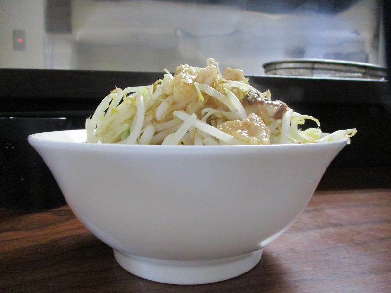 ふつうに食べてるとなかなか麺にたどり着けないので、麺ともやしをひっくり返します。