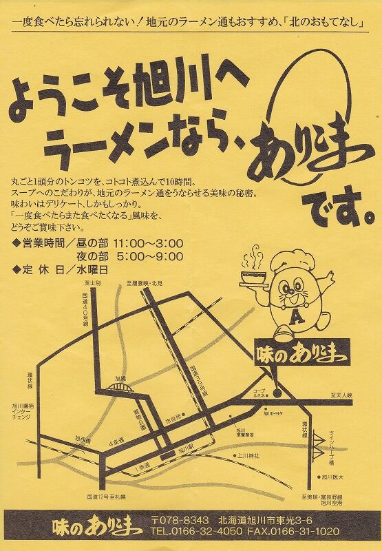 旭川に越して間もない頃に食べた記憶がしっかり残っています。