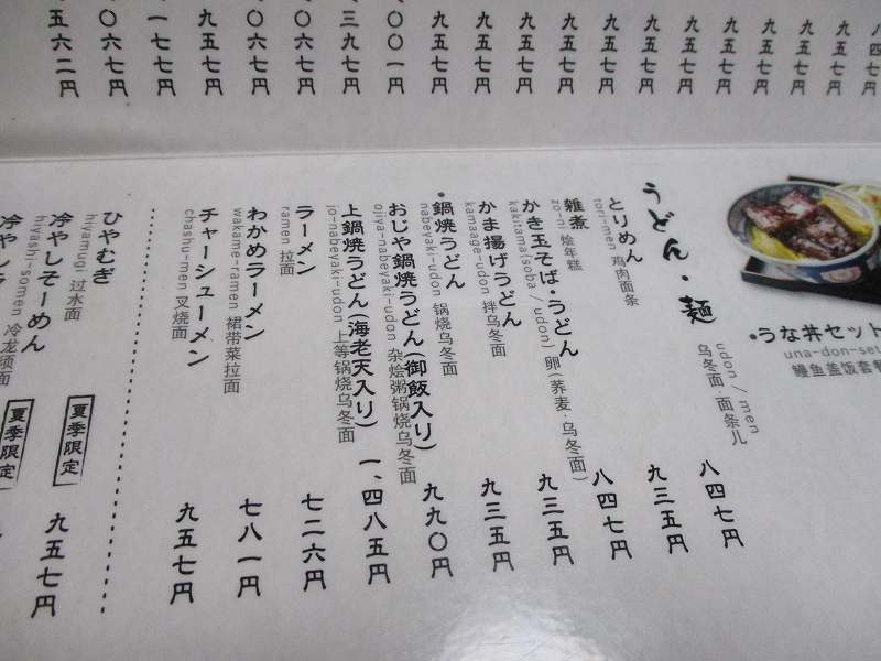 メニュー(うどん・麺)
