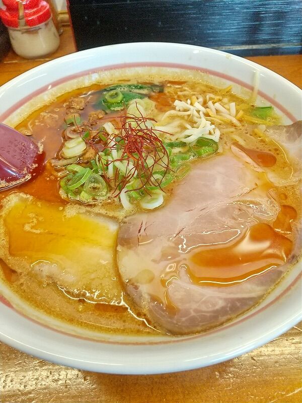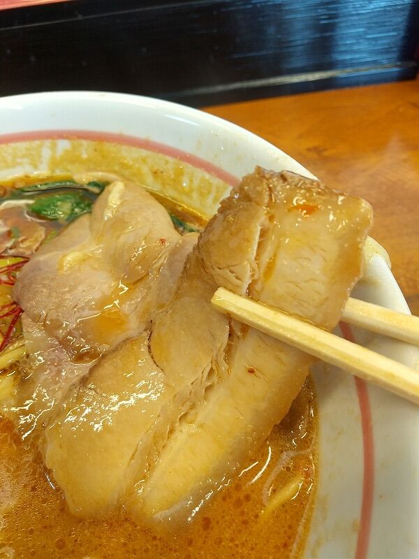 やはり濃い~仕上がりでパンチがありますね‼ 甘さよりも塩分が効いてるのと、ガッツリチャーシュー&挽肉もしっかり入って、食べている途中で(やっぱりライス頼むべきだったな…)と思いましたが、最近ちょっと過食ぎみだしね…💦