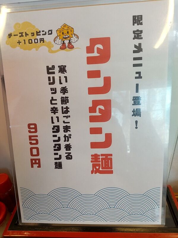 限定メニュー「タンタン麺」(950円)₊「チーズトッピング」(100円)