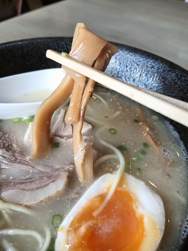 しっかりした豚骨ダシ、香ばしいラードで熱々の一杯💦